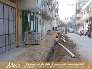 تأهيل وتطوير لشبكات المياه وشبكات الصرف الصحي في ستة مناطق داخل مدينة غزة, حيث شملت الاعمال تمديد شبكات مياه حوالي 4200 متر , اضافة الى 4 اربع شبكات تصريف لمياه الصرف الصحي في مدينة غزة. |